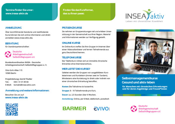 - Zeit: wöchentlich, immer mittwochs, in der von 11:00 – 12:00 Uhr, der „offene Treff“ für Selbsthilfegruppen mit den Mitarbeitern der DRK-Selbsthilfekontaktstelle